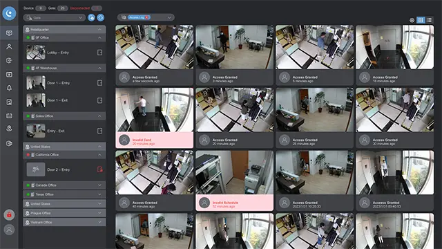 GV-Cloud Access Control is a web-based solution that allows for remote management of access levels, including searching access logs, viewing playback video, controlling door locks, and making system changes from anywhere.